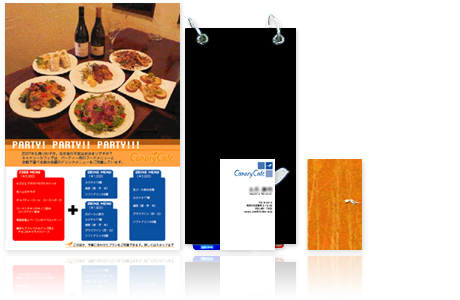 - Graphic Design(メニュー、名刺、ショップカード、ポスター、フライヤー、のぼり、タペストリー、ノベルティ、ファブリックパネル) Copy writing(販促物等のコピー全般) Photograph(販促物等に使う写真の撮影)